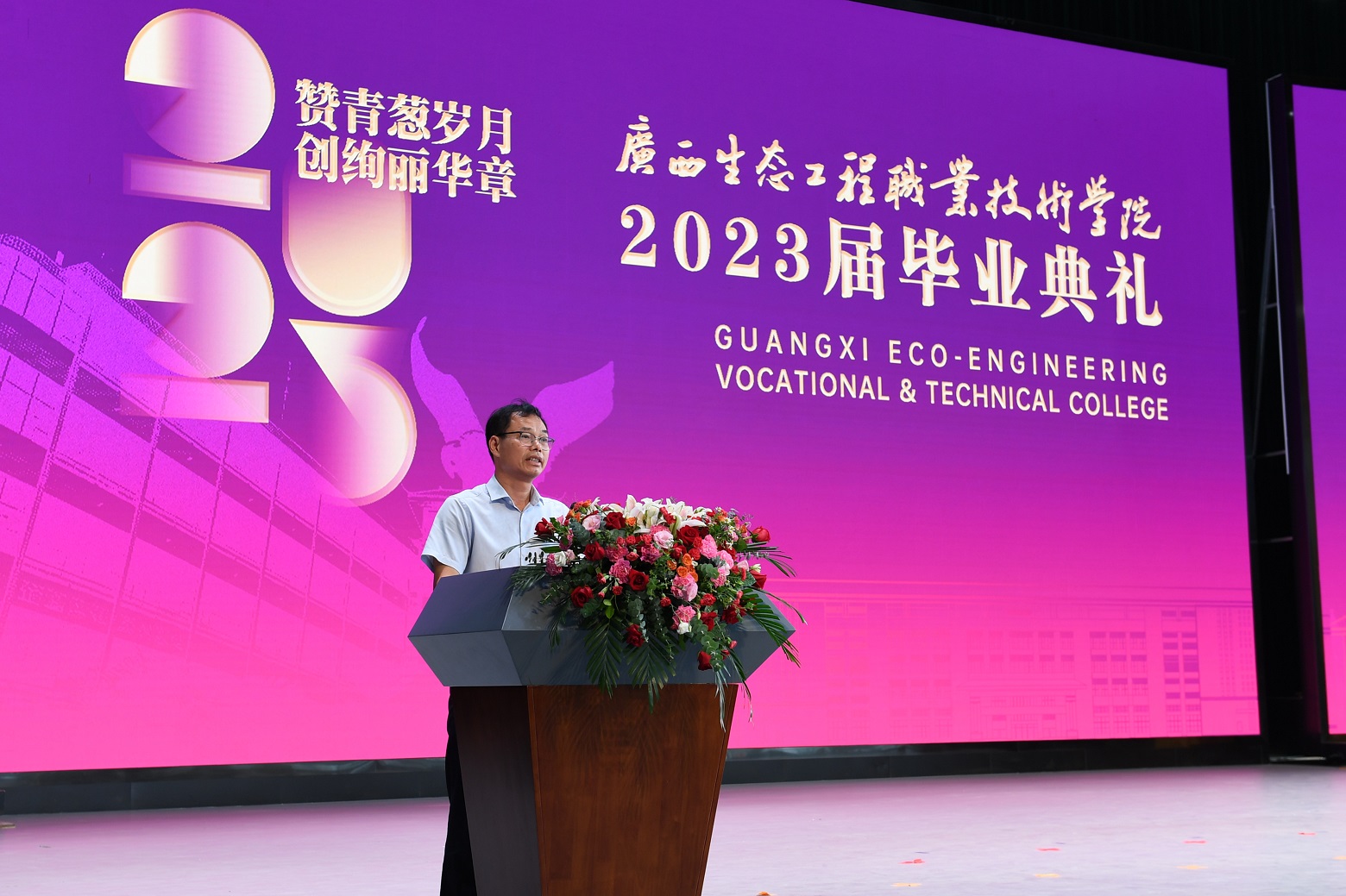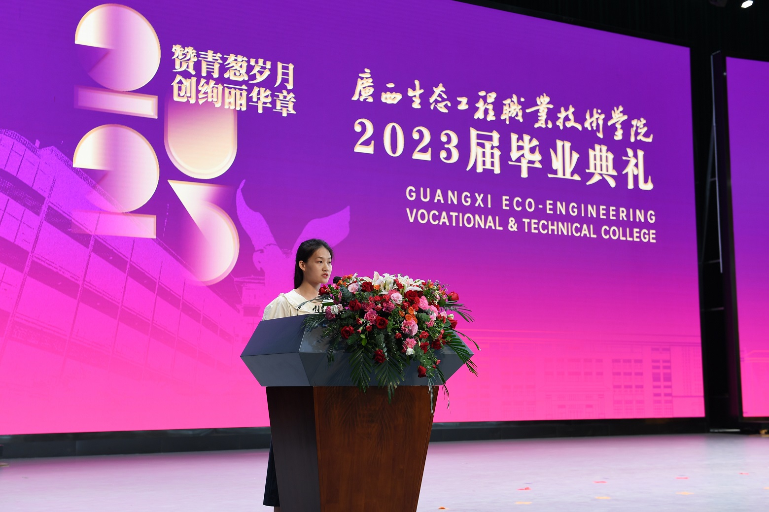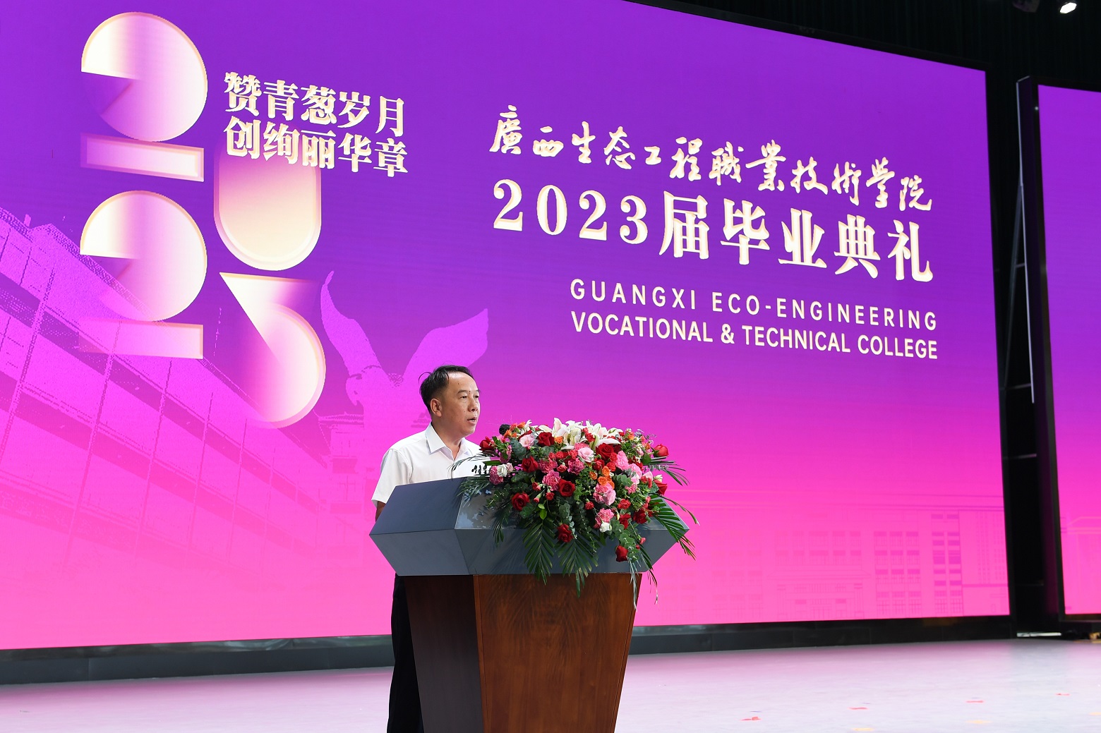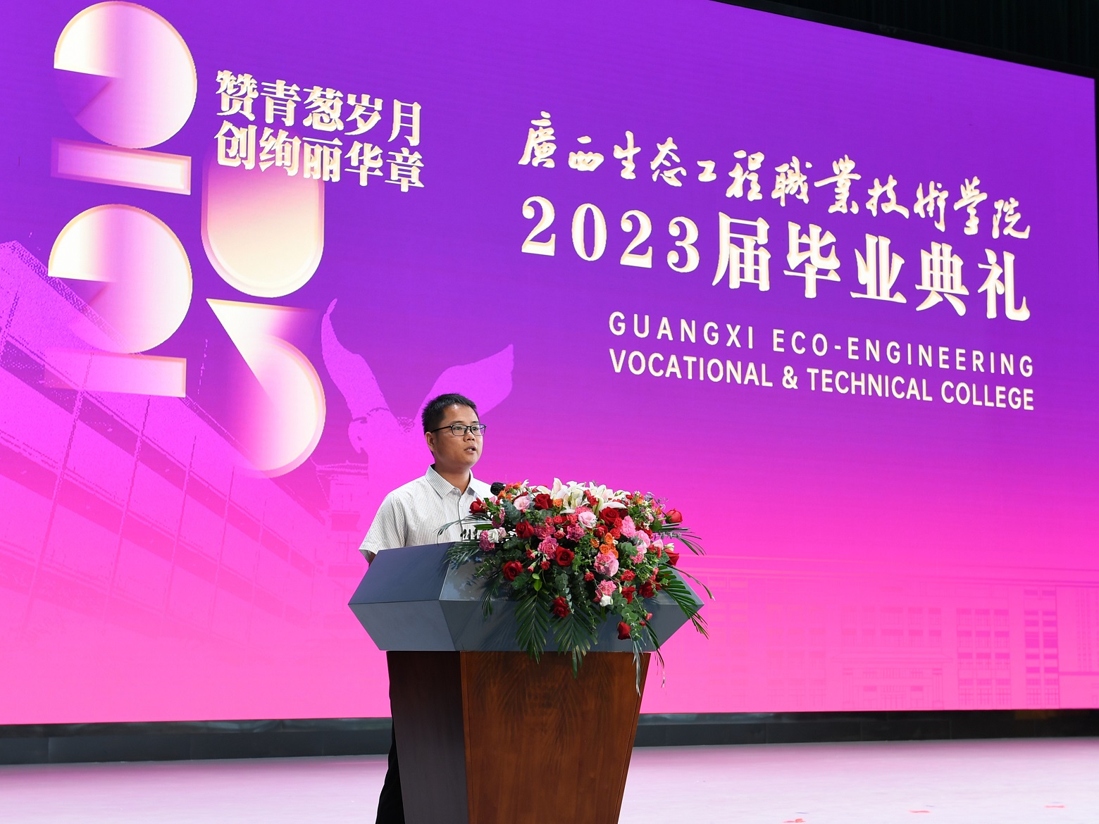 鹿寨县人大常委会副主任、林业专业1987级毕业生黄国华作为优秀校友代表在毕业典礼上致辞。黄国华呼吁母校广大毕业青年到祖国最需要的地方去,到艰苦的地方去,扎根基层踏实做事,在基层中反复淬炼,练就担当起实现人民群众对美好生活向往的时代重任,以理想者、担当者、吃苦者、奋斗者的姿态,奋进新征程、建功新时代,让青春在强国建设、民族复兴的火热实践中绽放绚丽之花!