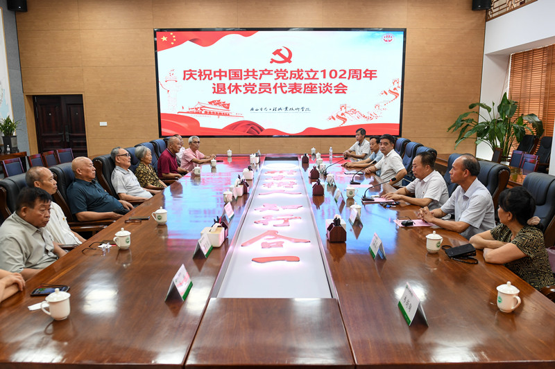 会前,王汉奇与退休党员代表在图书馆一棵树会议室召开了庆祝建党102周年座谈会,王汉奇代表学校党委向老党员致以诚挚的节日问候并送上节日关怀,与老党员共叙学校发展。