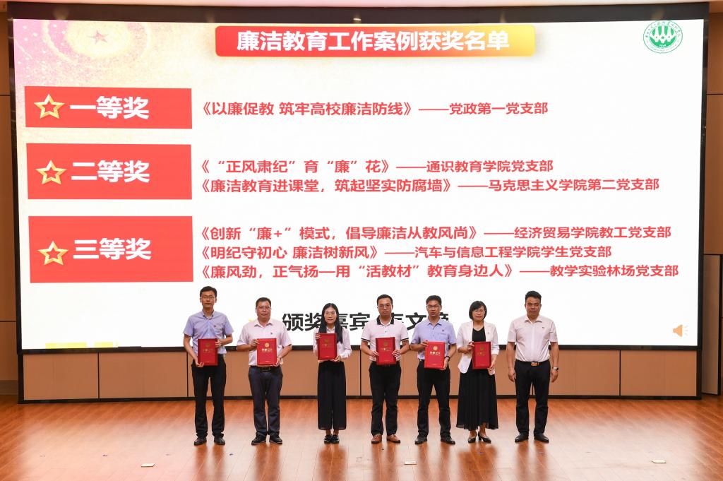 会上,新发展教师党员在李振秋的领誓下庄严宣誓,全体党员一同重温入党誓词。王汉奇代表学校党委宣读学校2022年度“两优一先”、学校廉洁教育系列活动获奖表彰决定。学校党委授予韦文榜等136位同志“优秀共产党员”称号,授予唐洪等38位同志“优秀党务工作者”称号,授予林业工程学院党总支等7个基层党组织“先进基层党组织”称号,对学校廉洁教育系列48个优秀作品获奖者和集体进行表彰,出席会议的校领导为受到表彰的先进集体和优秀个人依次颁奖。