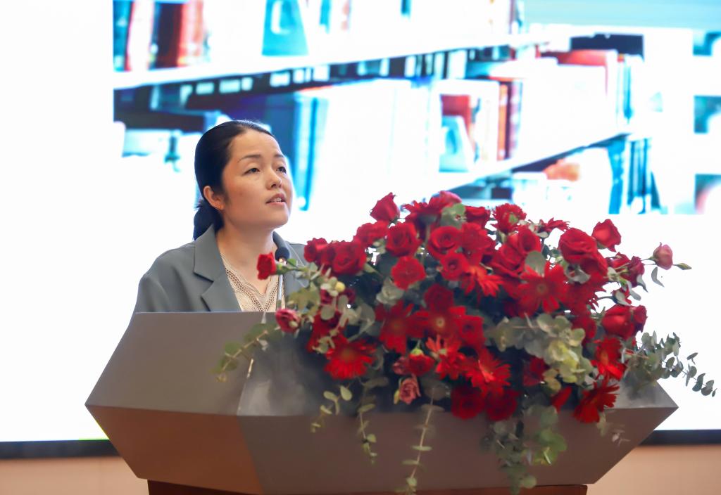 薛宏珍代表柳州市图书馆学会大中专分会发言,介绍了分会第五届理事变更情况,回顾和总结了2021至2023年分会工作及成员单位、老师的获奖情况。