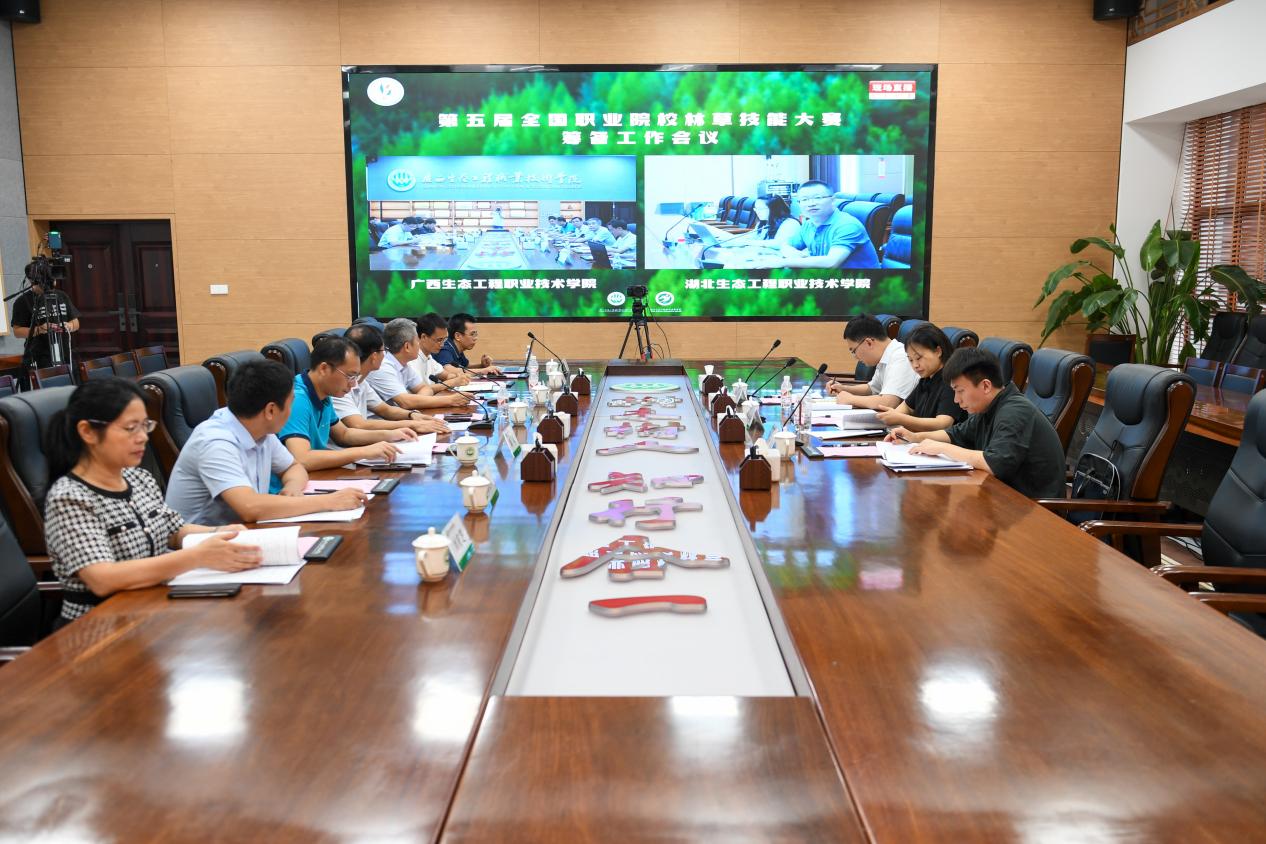 首先,各位领导到林业工程学院的三个赛项比赛现场进行检查与指导。随后,pg娱乐与湖北生态工程职业技术学院通过线上连线的方式开展了第五届全国职业院校林草技能大赛筹备工作会议。会上,冯昌信向来宾表示热烈的欢迎,表示非常荣幸能够与湖北生态工程职业技术学院共同承办此次大赛,简要介绍了学校基本概况以及赛事筹备等情况,并表示一定要公平公正组织和办好本次大赛。湖北生态工程职业技术学院江雄波副校长通过线上连线的方式介绍了该校的基本情况和赛事筹备情况。接着,教务处杨萃洁副处长向各位领导具体介绍了本次大赛筹备工作的进度,表示两个学校领导对此次大赛高度重视,专门成立了大赛领导小组,通过统筹协调、详细布置,编制了大赛总体工作方案和详细的工作流程,同时也希望得到各位领导的进一步指导。黎森处长也表示,在国家林草局领导的信任和大力支持下,pg娱乐与湖北生态工程职业技术学院一定能够齐心协力完成本次大赛的组织工作。