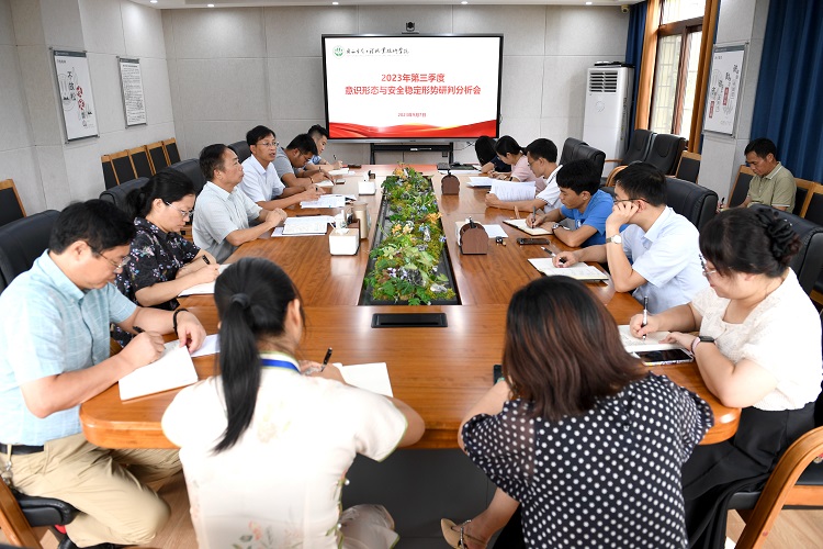 会上,教务处、科研处、设计学院、园林学院相关负责人先后汇报了各自负责领域的意识形态和安全管理方面的情况,针对教材、科研项目、学生顶岗实习及意识形态阵地管理等相关工作进行风险点的分析研判,并针对性地提出了下一步举措和计划。