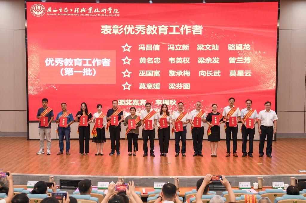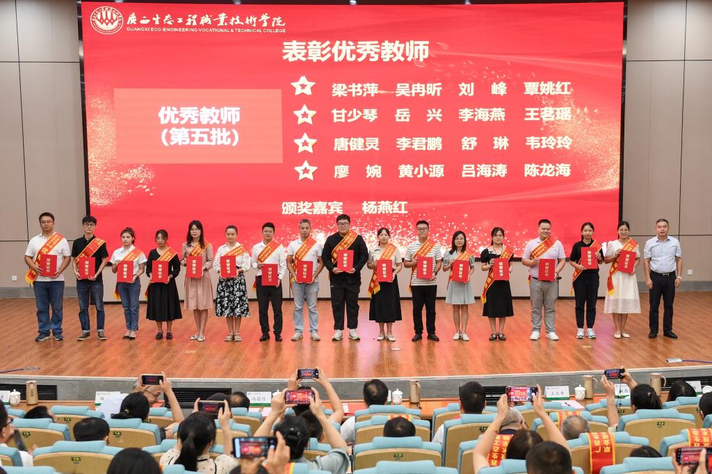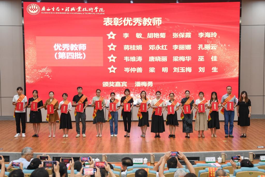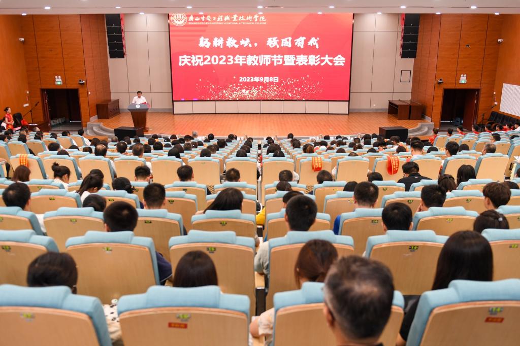 在第39个教师节来临之际,9月8日下午,pg娱乐在知行报告厅隆重召开庆祝第39个教师节表彰大会。学校领导李振秋、冯昌信、王汉奇、杨毅、杨燕红、潘梅勇、韦文榜出席大会,全体教职工参加大会。