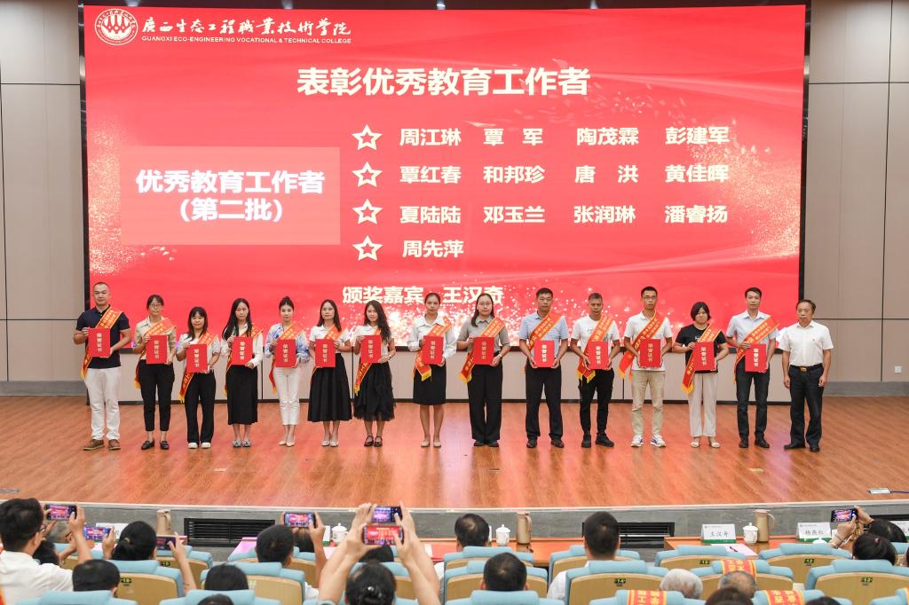学校领导分别为获得表彰的师德标兵、优秀教师和优秀教育工作者颁奖