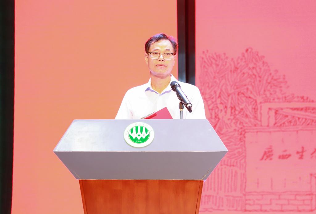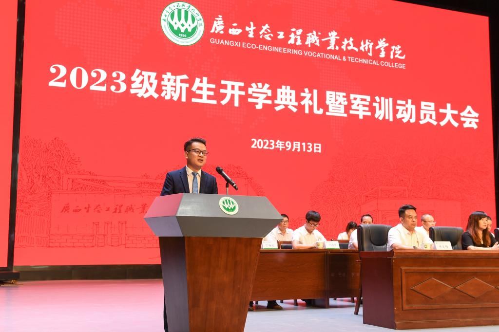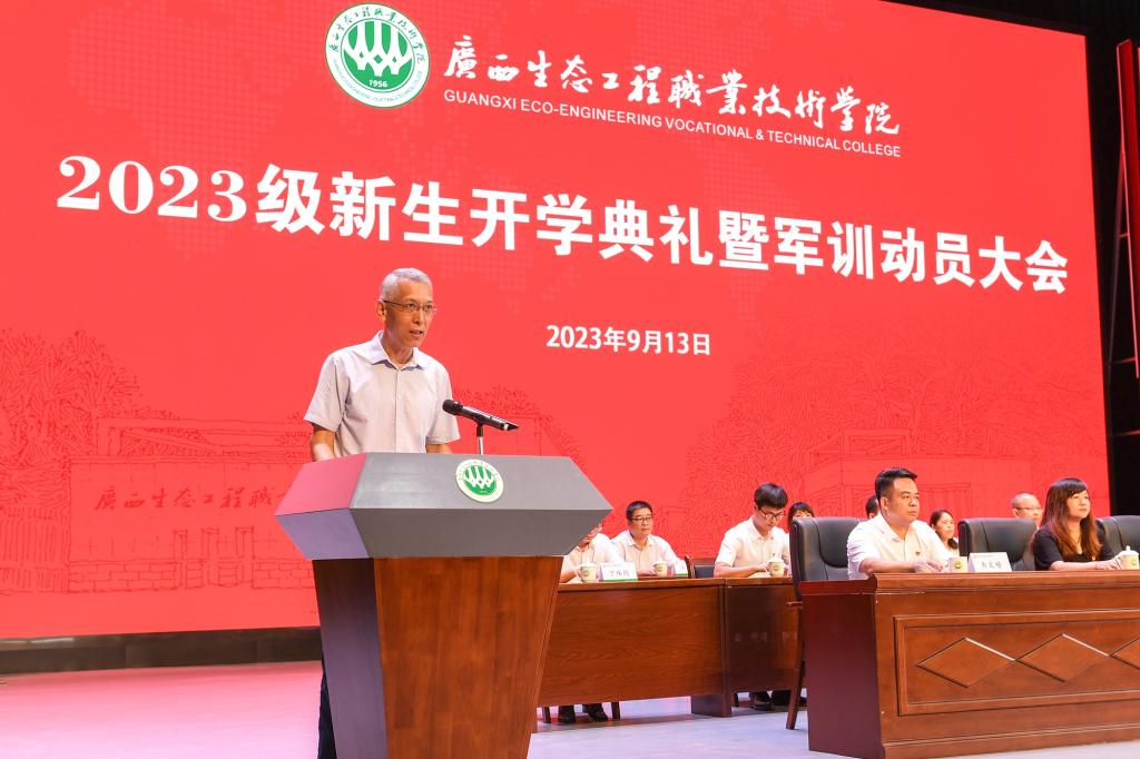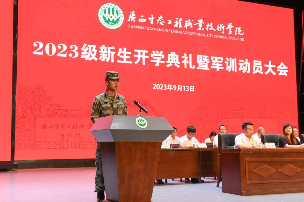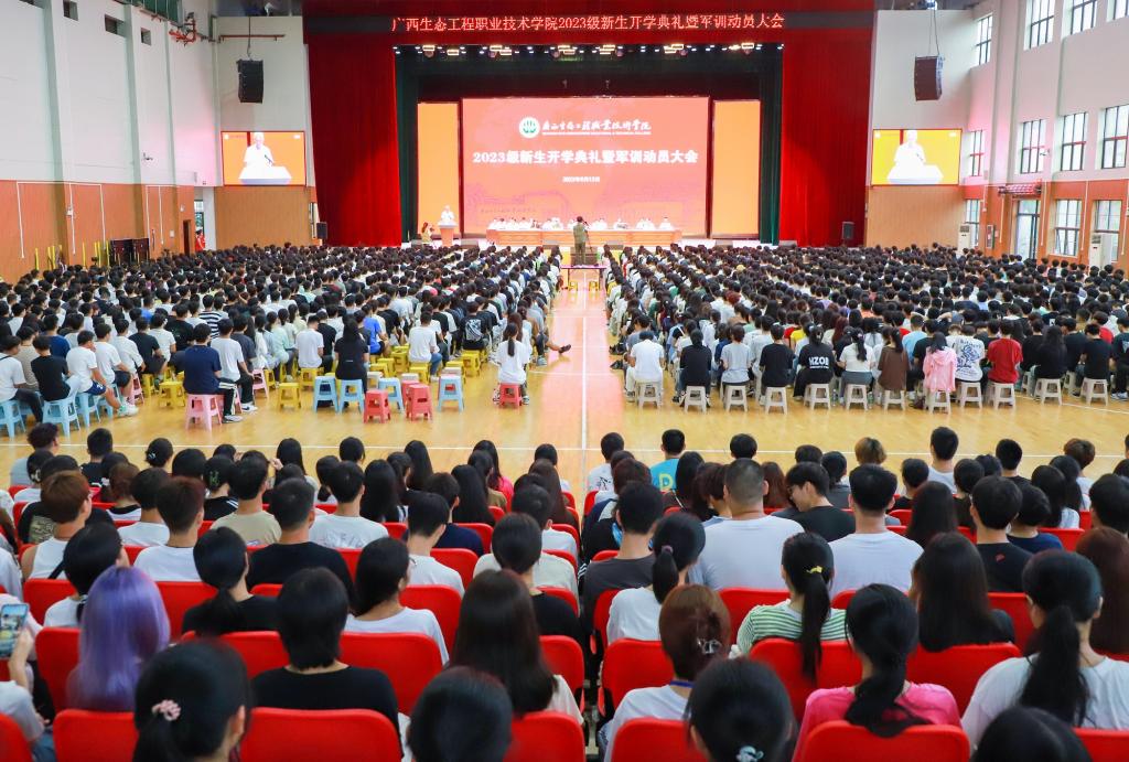 9月13日上午,pg娱乐隆重举行2023级新生开学典礼暨军训动员大会。学校党委书记李振秋,校长冯昌信,承训单位总教官孙官,副校长杨毅、杨燕红、潘梅勇,校长助理韦文榜,各部门负责人、二级学院分管学生工作领导,教师代表、在校生代表、全体2023级新生及其辅导员(班主任)参加会议。大会由杨毅主持。