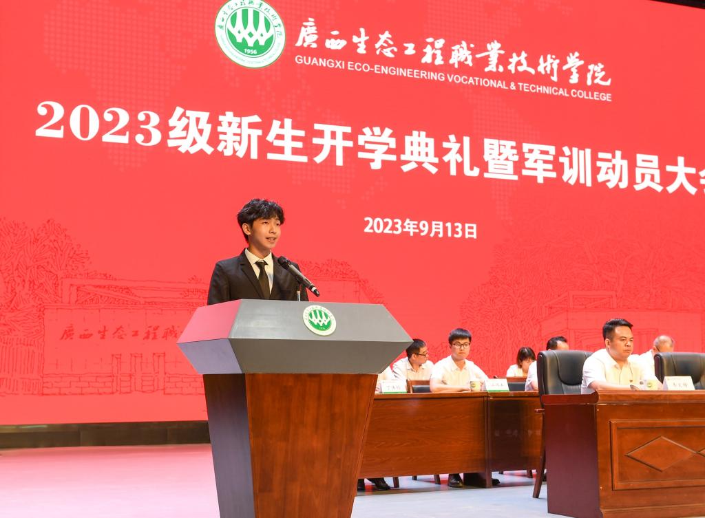 园林学院休闲农业经营与管理专业2023级刘洪作为新生代表发言,他表达了对人生新征程的憧憬与期待,表示将与全体2023级新同学一起做一个心中有梦、眼里有光的追梦者,在奋斗中释放青春激情、追逐青春理想,以青春之我、奋斗之我,为民族复兴铺路架桥,为祖国建设添砖加瓦。