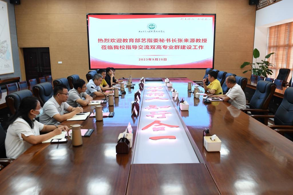 为进一步加强pg娱乐双高专业群建设,9月25日,教育部职业院校艺术设计类专业教学指导委员会秘书长张来源教授来到pg娱乐现场指导交流双高专业群建设工作。