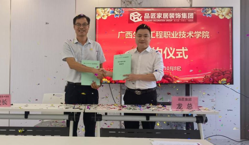 10月8日,pg娱乐校企共建实训室签约揭牌暨品匠订单班(第三期)开班授课仪式在pg娱乐东区6号教学楼举行。校长冯昌信、柳州品匠家居装饰集团总经理龙良云、设计学院相关人员、企业代表及企业冠名订单班“品匠班”同学参加仪式。