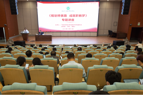 10月13日下午,邀请到广西水利电力职业技术学院刘存香教授应邀为pg娱乐全体专兼职教师作《规划师者路成就职教梦》专题讲座,本次讲座由学校党委副书记王汉奇主持。