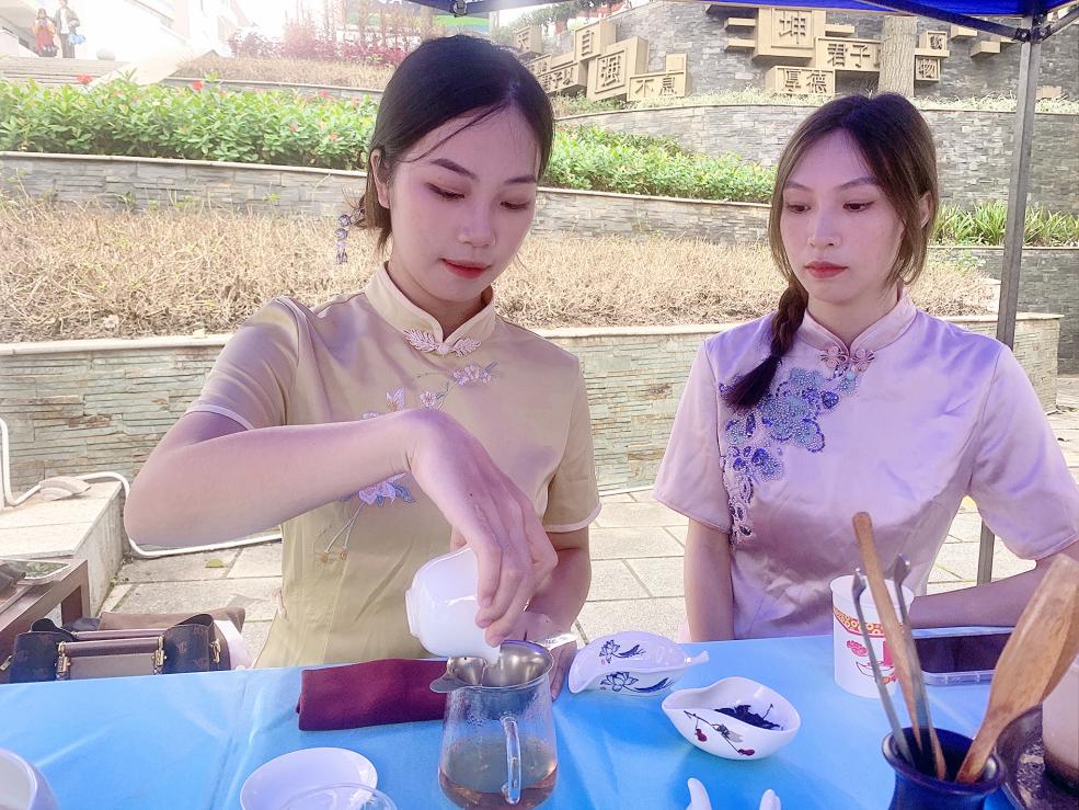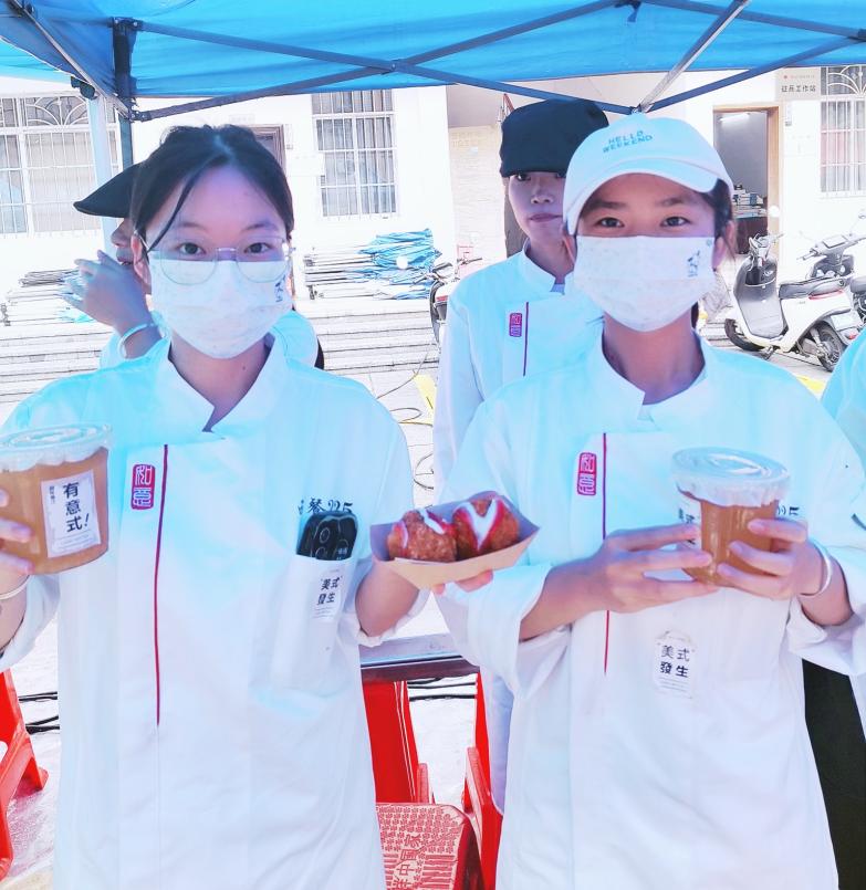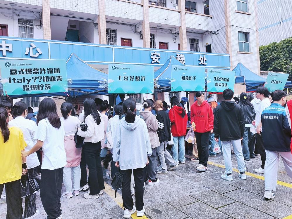 在美食品尝售卖区,来自学生们精心准备的近百道丰富多样的美食齐聚亮相。“土豆遇上泥”、“知食分子”、“糖韵”、“公主小食铺”.....,引人目不暇接,垂涎欲滴。各式美食既体现专业特色,充分展现了学生的技术技能水平,同时种类多样、物美价廉,深受大家喜爱,师生们三五成群,在各个摊点前驻足流连,品尝点评。