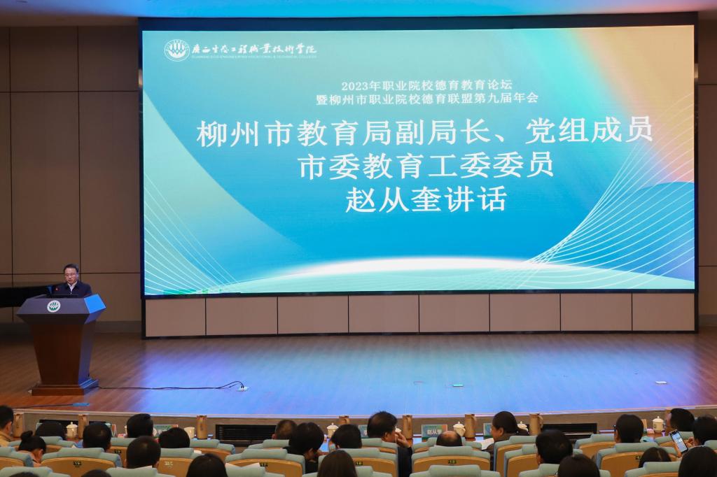 11月16日,2023年职业院校德育教育论坛暨柳州市职业院校德育联盟第九届年会在pg娱乐顺利召开,今年年会的主题为“立心铸魂育新人 守正创新向未来”,柳州市职业院校德育联盟成员单位及教师代表近500人齐聚一堂,分享德育工作经验,共商德育发展大计。