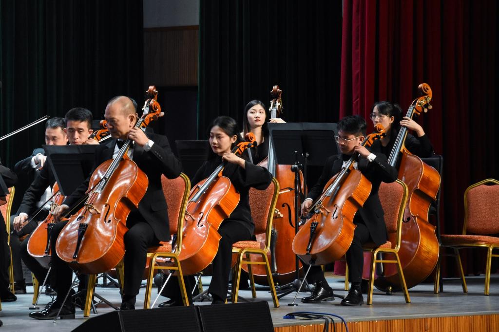 本场音乐会由广西交响乐团常任指挥吴纯老师指挥。在音乐会现场,交响乐团以默契的配合、精妙的编排,将一首首乐曲名作表现得淋漓尽致。旋律时而舒缓低回,时而高亢磅礴,每一个音符似乎都是跳动的精灵,乐声触碰每一位听众的心弦,艺术家们精湛的演奏技艺赢得了在场师生的阵阵掌声,优美动听的音乐令人陶醉难忘。