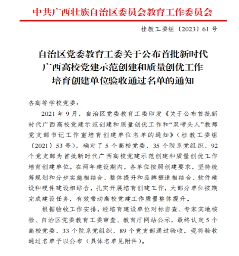 12月1日,自治区党委教育工委传来消息,林业工程学院教工党支部通过首批新时代广西高校样板党支部培育创建单位验收。