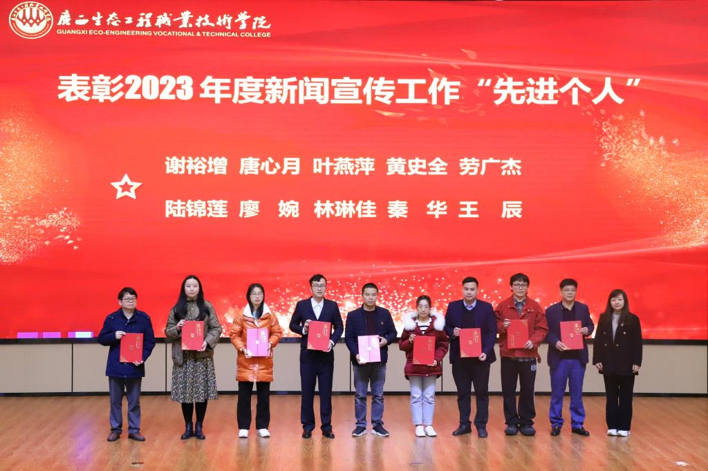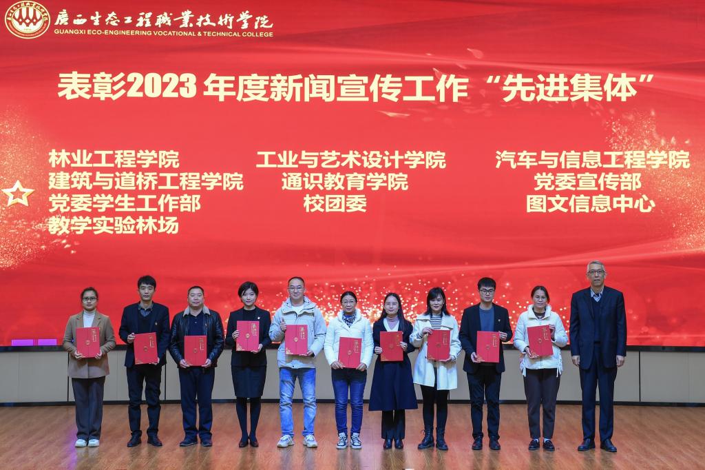 1月9日下午,学校在图书馆知行报告厅召开2023年度宣传思想文化工作总结表彰大会,学校党委副书记王汉奇、副校长杨毅、副校长杨燕红、副校长潘梅勇、纪委书记许金龙出席会议。会议由党委宣传部副部长梁必玉主持。学校党员、科级以上干部、各部门通讯员参加会议。