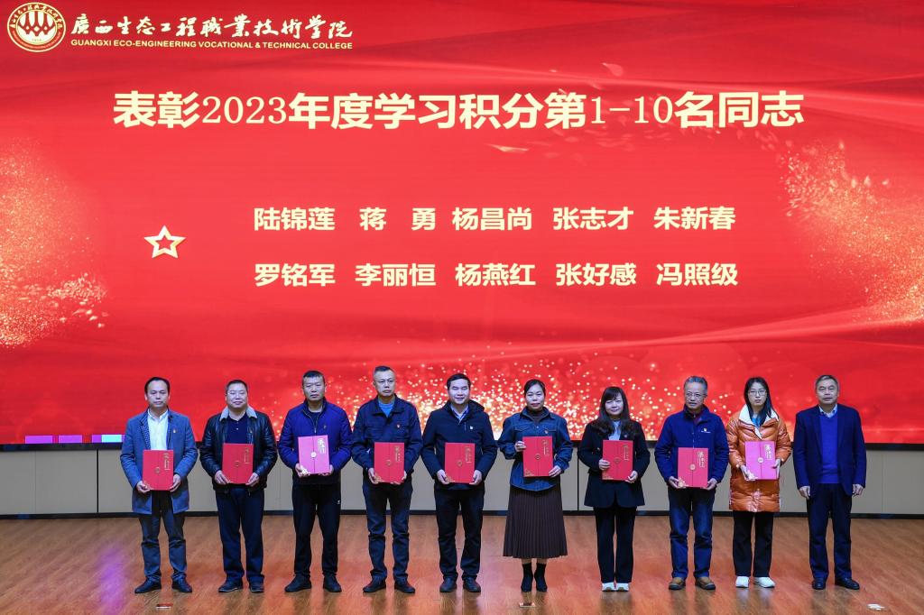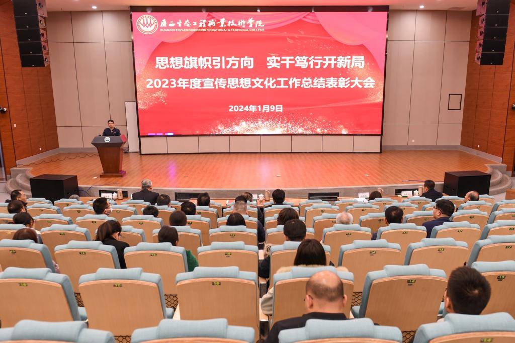 党委委员、宣传部部长冯立新作2023年宣传思想文化工作总结,他围绕践行“举旗帜、聚民心、育新人、兴文化、展形象”的使命任务,从宣传工作、思想政治教育工作、校园文化建设等方面进行了总结。分享了学校在国家AAAA级景区、全区”三全育人“典型学校、”三全育人“综合改革示范院系、广西科普教育基地、广西自然教育基地申报和建设经验。针对2024年的工作计划,他指出,要继续抓好理论学习和意识形态工作、抓好校园文化精品项目建设、抓好宣传思想文化工作队伍建设。