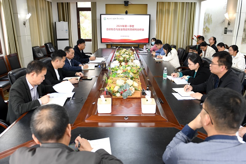 1月19日下午,学校2024年第一季度意识形态与安全稳定形势研判分析会在东校区第一会议室召开。学校党委副书记王汉奇,各相关职能部门、二级学院主要负责人参加会议。会议由学校党委委员、党委宣传部部长冯立新主持。