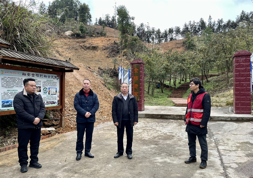 调研组一行先后前往才妙村金桔种植基地、大将镇电子商务产业园、金桔游客中心等地,听取了大将镇党委书记、学校优秀校友袁望对融安金桔的介绍,详细了解了融安金桔种植基地的生产经营模式、发展状况、存在问题等方面,深入交流金桔种植的科研队伍、品牌建设、交易方式等乡村振兴产业发展经验。