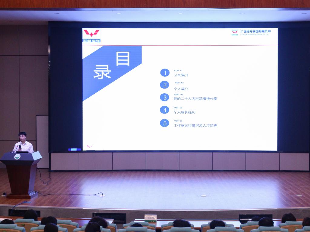 他讲述了自己从一名普通的职校学生一步步成长为行业技能领军人物的励志故事,并结合新能源汽车行业发展趋势和自身职业成长心得体会,勉励青年学子们坚定不移跟党走,明确人生发展方向,扎扎实实努力学好专业技术,培育和传承劳动精神、劳模精神、工匠精神,努力用专业技术回报父母、回报社会、回报祖国。
