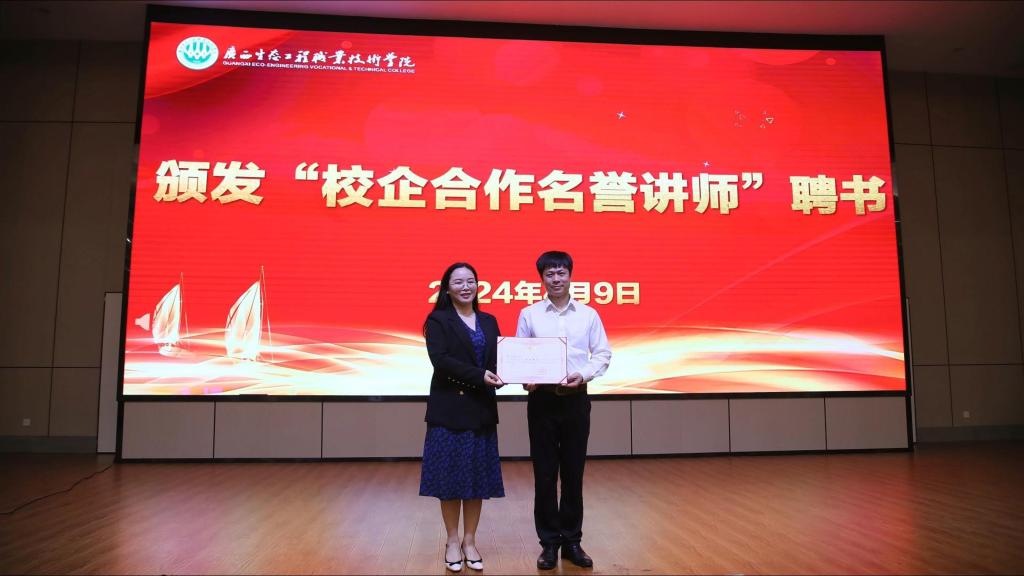 学校为郑志明颁发“校企合作名誉讲师”聘书
