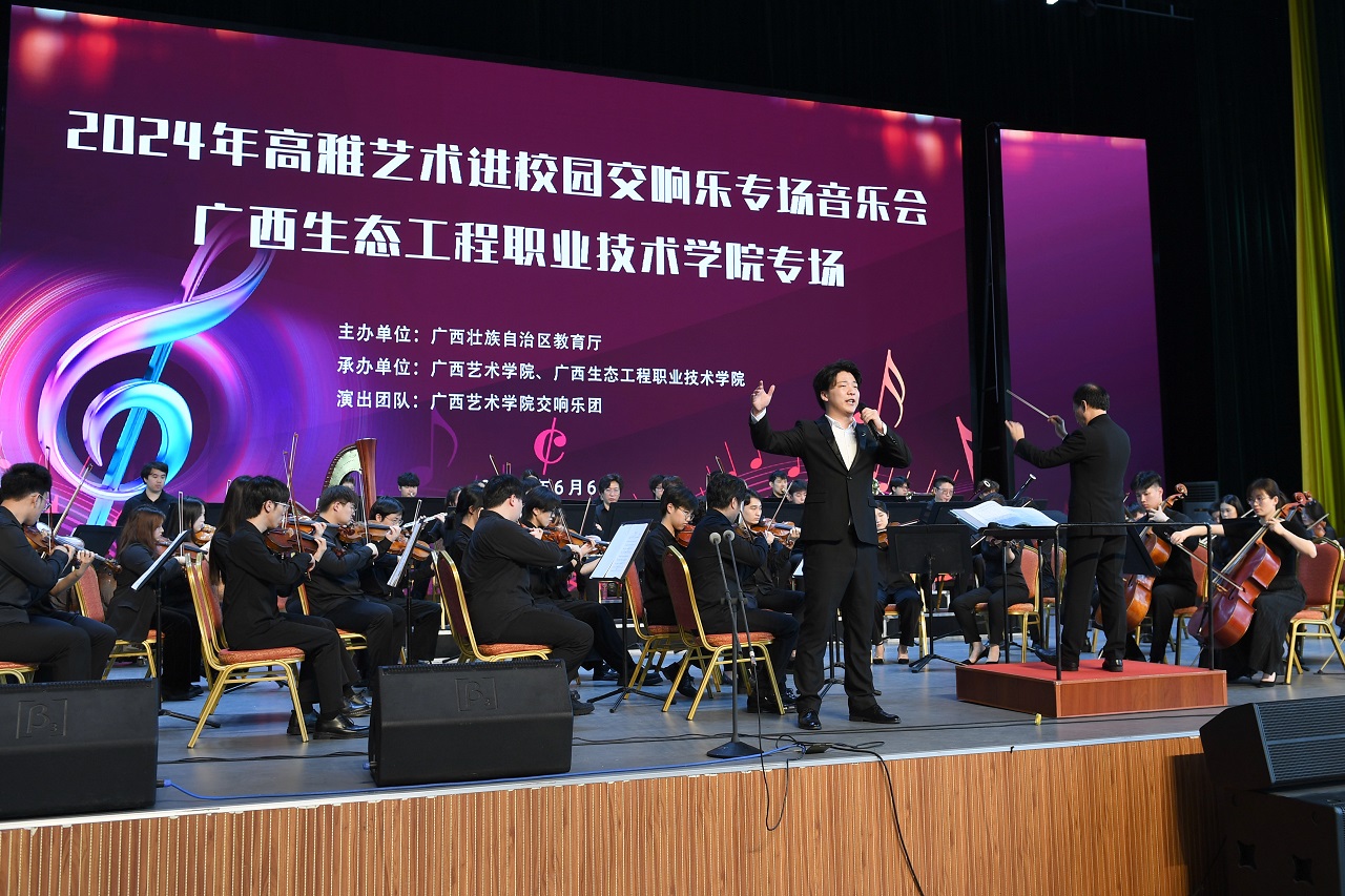 6月6日下午,广西2024年高雅艺术进校园交响乐专场音乐会pg娱乐电子游戏官网入口专场在学校文化艺术中心隆重举行。来自广西艺术学院交响乐团的艺术家们,用酣畅淋漓的音乐,为2000余名师生送来高雅音乐的视听盛宴。
