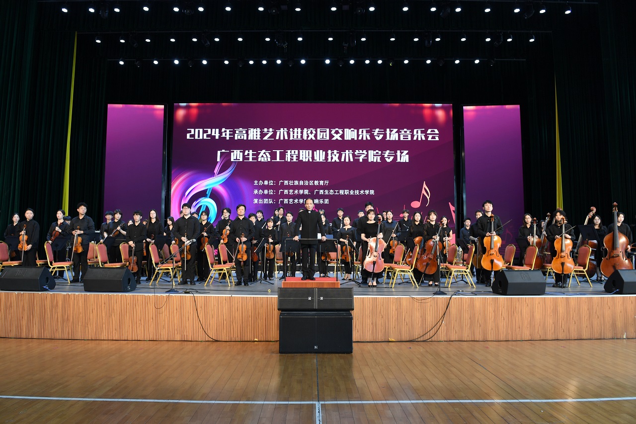 据悉,此次专场音乐会旨在进一步丰富校园文化,提高师生艺术修养,进一步推广普及高雅艺术,促进和谐校园的建设。由广西壮族自治区教育厅主办,广西艺术学院、pg娱乐电子游戏官网入口共同承办,广西艺术学院交响乐团作为演出团队。广西艺术学院音乐学院院长、国家一级指挥蔡央教授担任指挥,小提琴演奏家黄鹏担任乐团首席。
