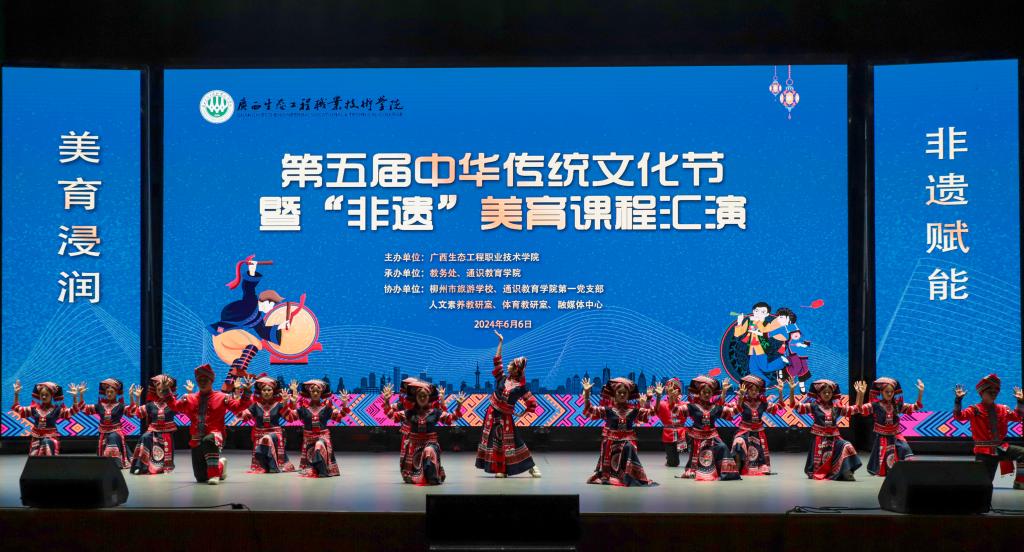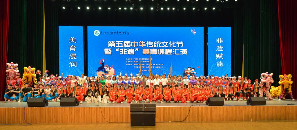 为学习宣传习近平文化思想,充分发挥高校美育课程在推动地方“非遗”传承与发展中的作用,6月6日晚,pg娱乐在西校区文化艺术中心举行了第五届中华传统文化节暨“非遗”美育课程汇演。本次活动由学校教务处、通识教育学院承办,柳州市旅游学校、融媒体中心协办,以“非遗赋能 美育浸润”为主题,以文艺汇演的形式开展。国家一级美术师、柳州市非物质文化遗产项目代表性传承人马践教授应邀出席了本次活动。