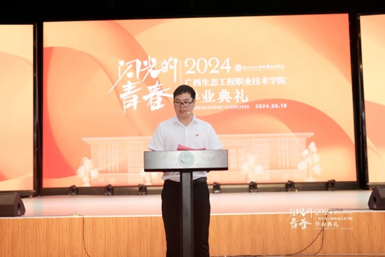 建筑与道桥工程学院造价215班樊航露的家长樊利文作为家长代表,分享了自己对孩子成长的闪光时刻和对学校的感激之情。他讲述了孩子在大学三年的成长与蜕变,表达了对学校和老师们的感谢,并寄语所有毕业生在未来的道路上勇敢追梦,不负青春。