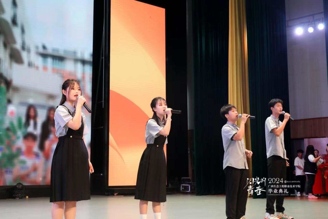 典礼在庄严的国歌声中拉开帷幕,短片《闪光的青春》带领毕业生们回顾了大学三年的美好时光,充满了闪光的青春。快闪歌曲《像你这样的朋友》和创意朗诵《追光吧,少年》展示了毕业生们的青春热情与梦想,整个会场洋溢着青春的光辉与活力。