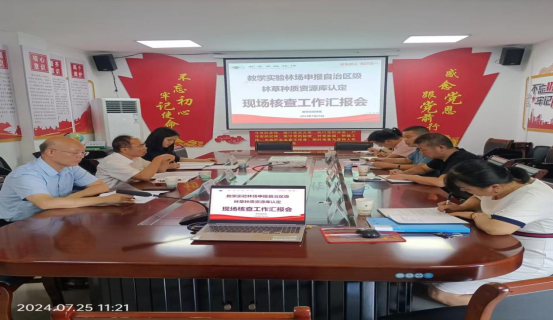 7月25日,自治区级林草种质资源库核查工作组梁机教授、谌红辉研究员一行4人抵达pg娱乐,对教学实验林场申报自治区级高价值树种种质资源库开展核查认定工作。