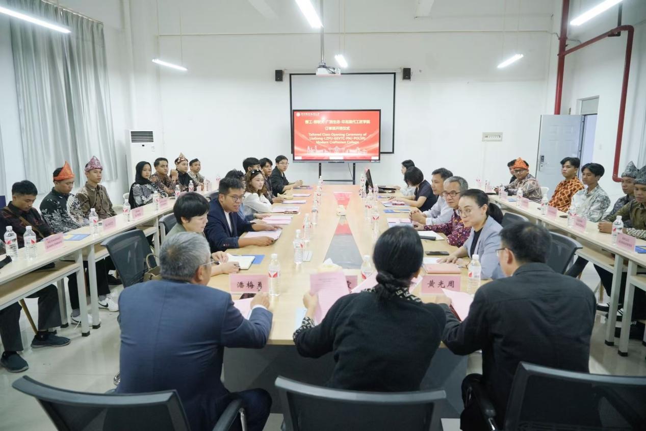 2024年10月24日,柳工-柳职大-广西生态-印尼现代工匠学院订单班正式开班,开班仪式在柳州职业技术大学举行。仪式由柳州职业技术大学国际交流处(国际教育学院)副处长吴兆辉主持,柳州职业技术大学副校长鞠红霞、pg娱乐副校长潘梅勇、广西柳工机械股份有限公司后市场服务黄光周总监及首届订单班20名印尼学生等相关人员参加了开班仪式。