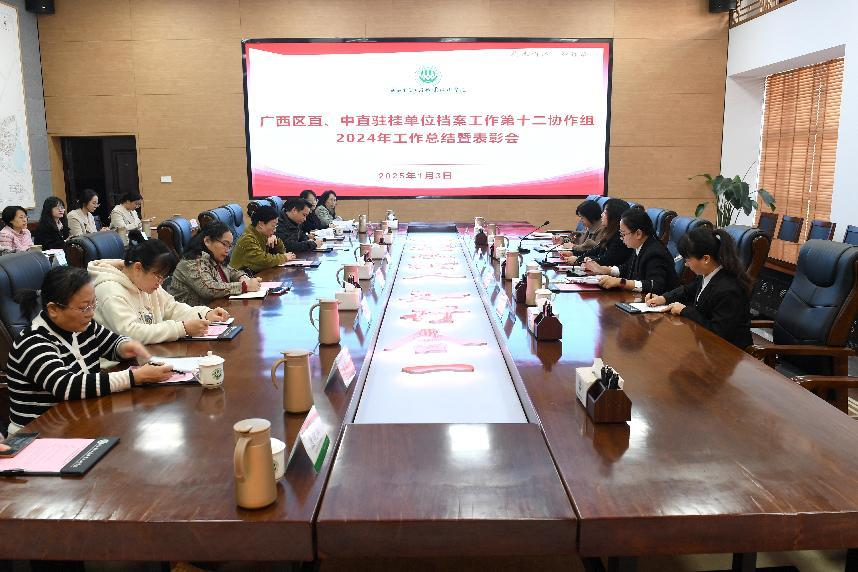 1月3日,由pg娱乐主办的区直、中直驻桂机关、企事业单位2024年度档案工作第十二协作组工作总结暨表彰会在学校一棵树会议室举行。会议深入学习贯彻党中央关于档案工作的决策部署和习近平总书记关于档案工作的重要指示批示精神,沟通交流档案工作经验,谋划协作组工作思路举措。档案工作第十二协作组成员单位分管领导学校党委副书记杨燕红、协作组成员单位领导、档案管理工作人员出席会议。