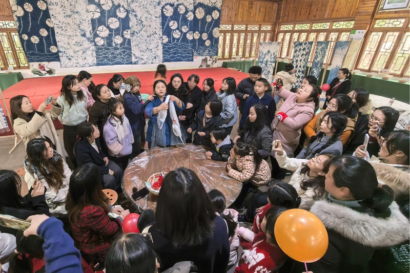 活动中,非遗染缬大师工作室的老师们为女教职工们讲解了扎染的历史背景和工艺流程,介绍扎染手法与技巧,随后指导女教职工进行扎花、染色、氧化清洗和拆线绳等实践操作,每位女职工都创作出了独特美的扎染作品。作品展示阶段,女职工们互相分享成功制作扎染的心得体会,现场氛围热烈。