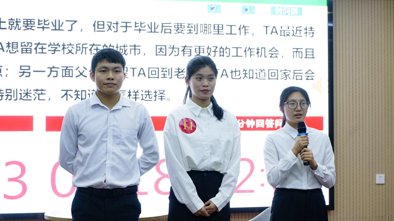 大赛一经启动,便迅速吸引了全校师生的广泛关注与积极参与,共有120支队伍报名。初赛于4月21日以心理健康知识测试的形式进行,考查参赛团队的理论素养和业务知识。经过严格评审,13支队伍脱颖而出,成功晋级决赛。决赛舞台上,选手们在紧张而有序的氛围中,精彩呈现心理辅导模拟,充分彰显了当代大学生优秀的心理辅导才能与助人风采。