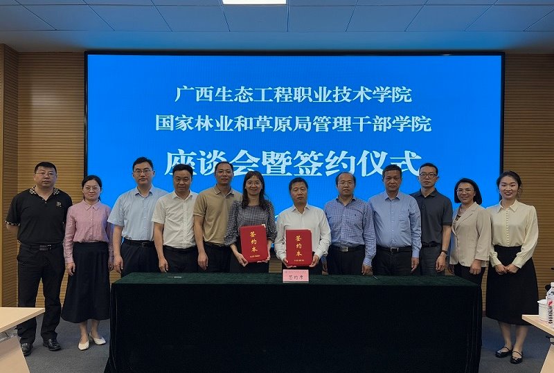 5月15日,校长韦林率队前往国家林业和草原局管理干部学院交流调研,并签订合作备忘录。国家林业和草原局管理干部学院党委书记、局党校副校长刘春延,副院长、局党校专职副校长赵玉涛出席交流会和签约仪式。