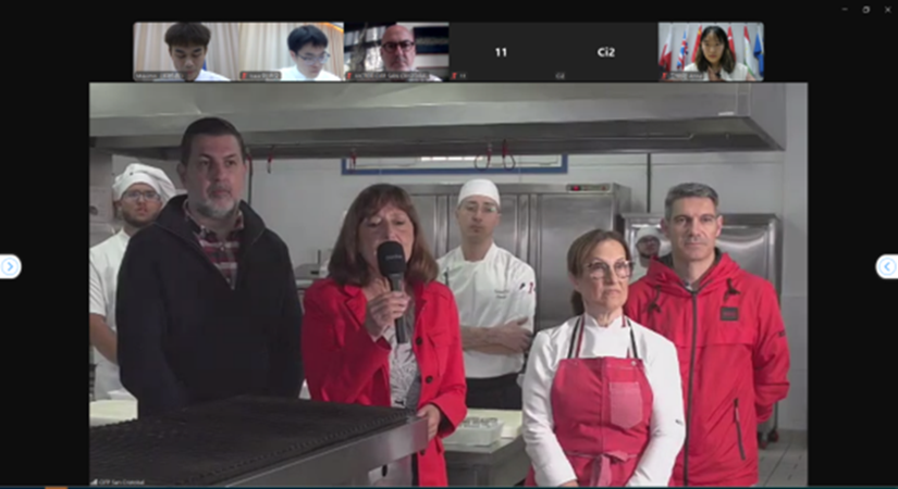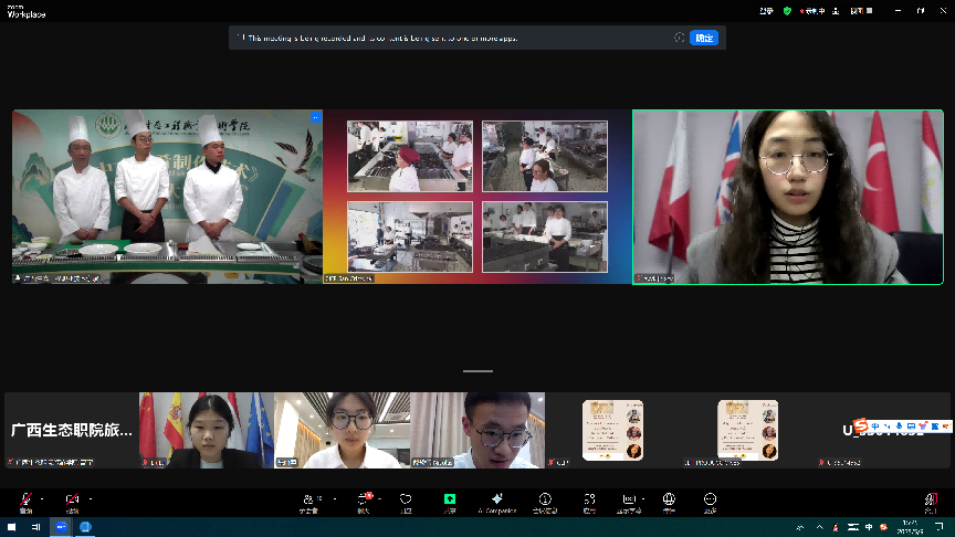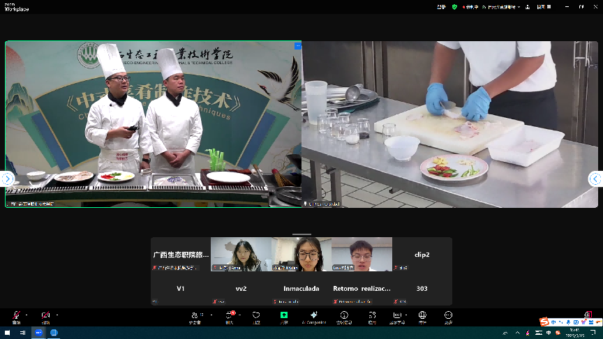 今年3月至5月,《中式菜肴制作技术》课程在西班牙圣克里斯托瓦尔综合职业培训学校成功推广应用。借助线上直播的形式,双方跨越地域限制,展开4次精彩的教学互动。课程依据西班牙食材市场与消费者的美食偏好,精心挑选红烧肉、麻婆豆腐、爆鱿鱼卷和宫保鸡丁作为教学内容。学校派出由广西技术能手易西俊、郭景鹏领衔的教学团队,他们凭借精湛技艺,生动传授中式烹饪技巧,通过技能演示与专业菜品点评,让西班牙学员领略到中式菜肴的独特魅力。