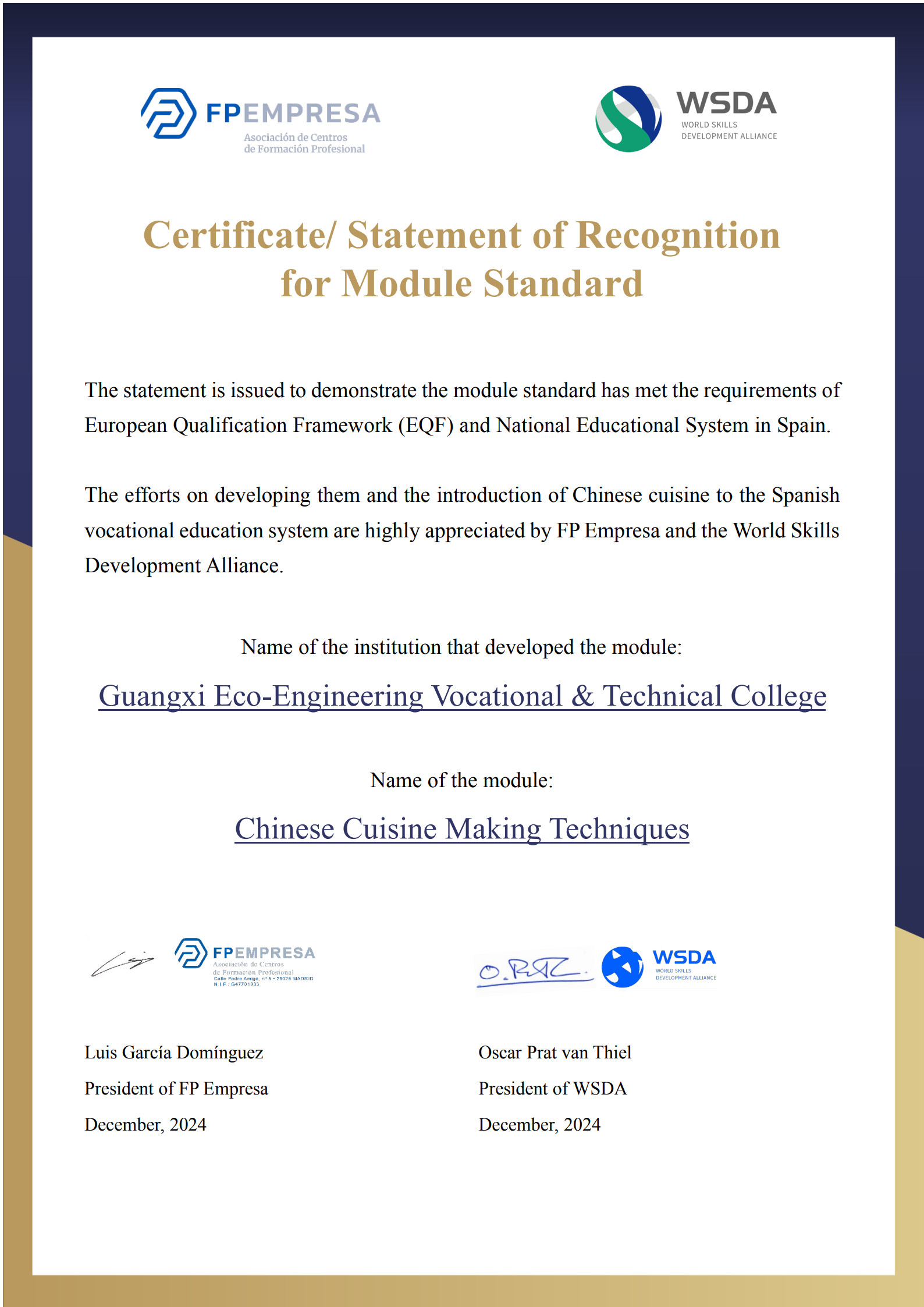 pg娱乐顺利完成西班牙国家中餐数字教育资源库建设暨课程标准及数字化课程开发项目中《中式菜肴制作技术》课程的国际化标准认证。这一成果不仅是对学校专业实力的高度认可,更标志着中式菜肴制作技术朝着国际化、标准化迈出坚实一步,为该课程后续在海外的推广应用奠定了坚实基础。
