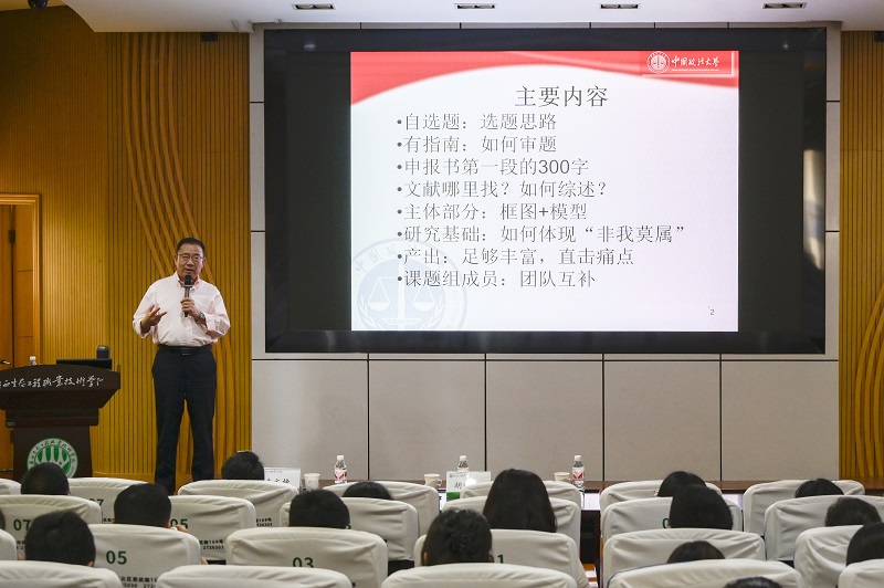 为推动学校新一轮“双高”标志性成果,助力教育教学高质量发展,2025年6月19日下午,学校在西校区青山报告厅举办“生态大讲堂”2025年第二讲,特邀中国政法大学二级教授胡继晔作题为“如何成功申报纵向课题”的专题讲座。校长助理韦文榜主持活动。