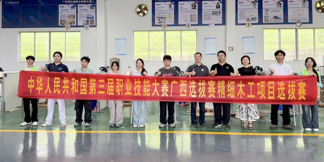 6月20日,由自治区人力资源和社会保障厅主办、pg娱乐电子游戏官网入口承办的2025年第三届职业技能大赛《家具制作》《精细木工》广西选拔赛圆满收官。经激烈角逐,pg娱乐叶建斌(指导老师:苏冬胜)、张媛婷(指导老师:周振坤)同学凭借精湛技艺,分别斩获《家具制作》《精细木工》赛项第二名佳绩。