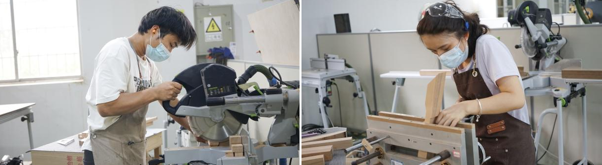 家具制作赛项,选手需按图完成实木家具制作。综合考察识图、榫卯加工、工具使用及流程规划等能力。精细木工赛项,要求选手依图纸制作木质构件。重点考核榫接技术,对尺寸精度、表面平整度要求严苛。备赛阶段,教练制定科学严谨的训练方案。两位选手进行了高强度集训模式,以高度的专业素养,规范操作专业工具,持续优化制作流程与工艺细节,充分展现新时代技能人才的工匠精神。