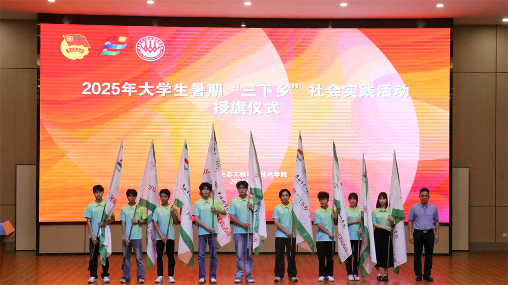 与会领导为2025年本次暑期“三下乡”社会实践暨“与爱同行,家访暖人心”、“青年红色筑梦之旅”活动进行了授旗。鲜红的队旗象征着责任与使命,接过旗帜的队员们纷纷表示,将珍惜这次走出校园、深入基层的机会,用脚步丈量祖国大地,用专业知识服务乡村振兴。