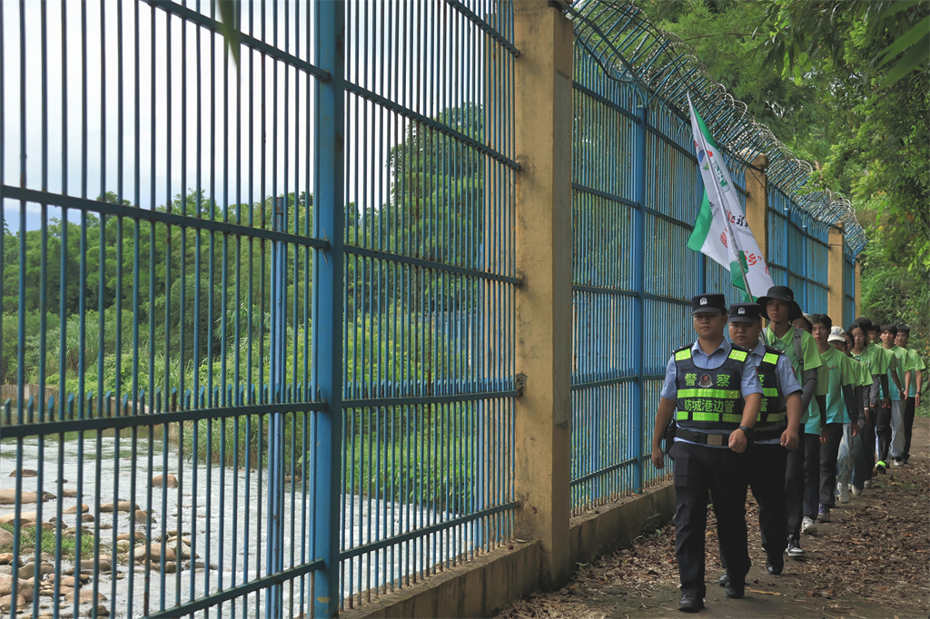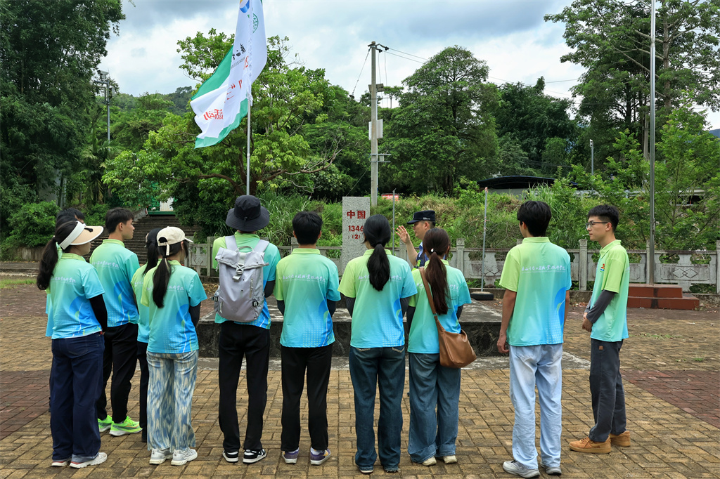 从大清国1号界碑到1314号界碑,100多年历史沧桑,显示了中国领土的神圣不可侵犯。实践团沿着边境线,特别设计“界碑密码”实践路线:在大清国1号界碑前感受历史的变迁,在1314号界碑开展“一生一世守边疆”主题团日活动,于南端界碑前重温入团誓词。最令人动容的是跟随边防民警徒步巡查1346号界碑边境线时,队员们在面对描红的“中国”二字时,00后队员们感慨:“指尖触摸到碑文的刹那,才真正读懂‘寸土寸金’的分量。”