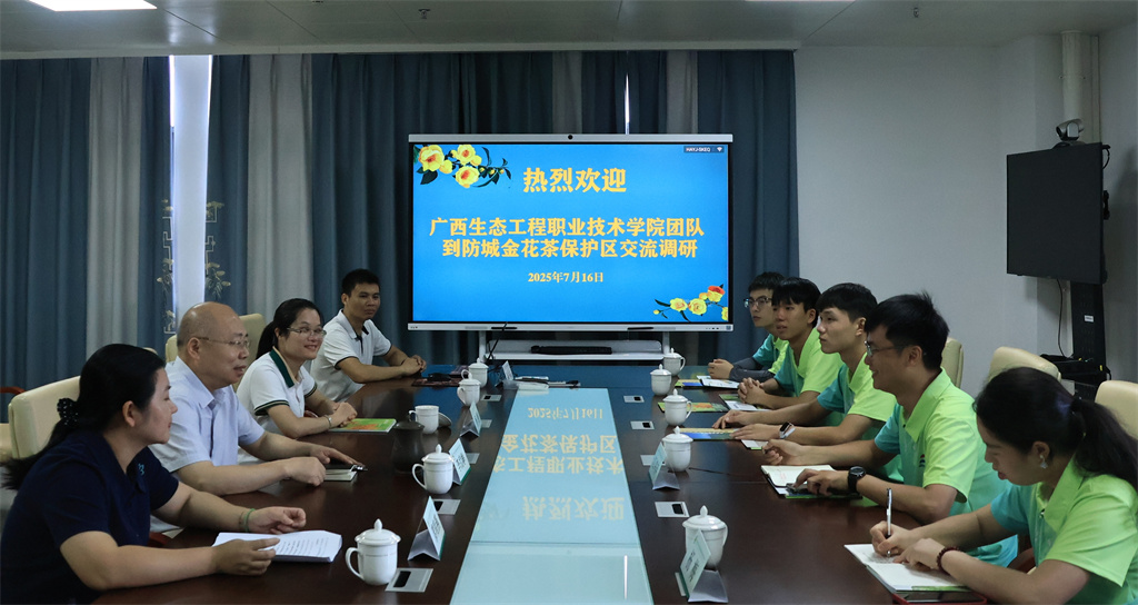 实践团抵达金花茶国家级自然保护区,与保护区管理人员开展专题座谈,深入了解金花茶的物种保护、人工培育及产业化发展现状。金花茶作为国家一级保护植物,金花茶被誉为“植物界大熊猫”和“茶族皇后”,兼具生态价值与经济价值,是防城港市特色农业的重要支柱。座谈会上,保护区负责人介绍了金花茶从野生保护到规模化种植的转型历程,以及“科研+企业+农户”的产销模式。团队成员围绕产业升级、品牌推广等议题与当地专家展开讨论,提出结合电商平台拓宽销售渠道等建议。
