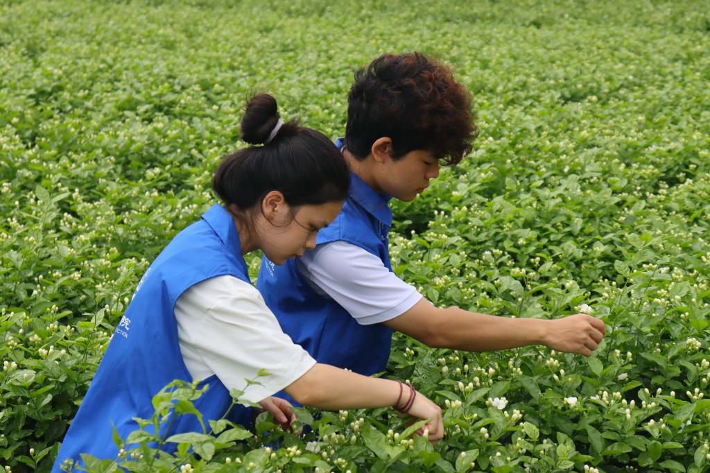 7月20日至22日,超强台风“韦帕”逼近。得知部分花农仍有茉莉花未及采收,实践团迅速响应,积极参与抢收行动。成员们分组协作,高效采摘,并成功将鲜花运送至市场,协助完成分装等工作,为花农保住了宝贵的收益。这场台风来临前的“茉莉保卫战”,不仅是一次及时的爱心助农,更是生态学子将专业知识融入社会实践的生动体现。他们用行动诠释了新时代青年的责任与奉献,在风雨中守护住了横州的“致富花”。