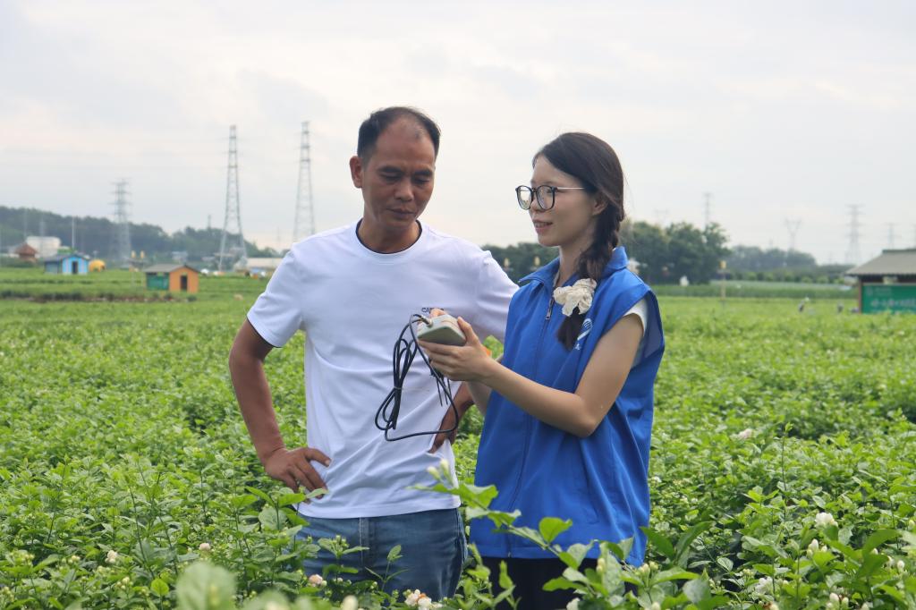 针对茉莉花产业发展中的技术痛点,实践团确立了“以技术破题,用仪器赋能”的方向。联合土肥站技术人员,团队在校椅镇中华茉莉园开设了“田间课堂”。成员们围绕土壤、植物养分速测仪的操作规范、数据读取方法及结果应用等内容,将专业术语转化为通俗易懂的语言,为花农进行细致讲解与实操指导,有效提升了花农的操作能力,为产业可持续发展提供技术支撑。