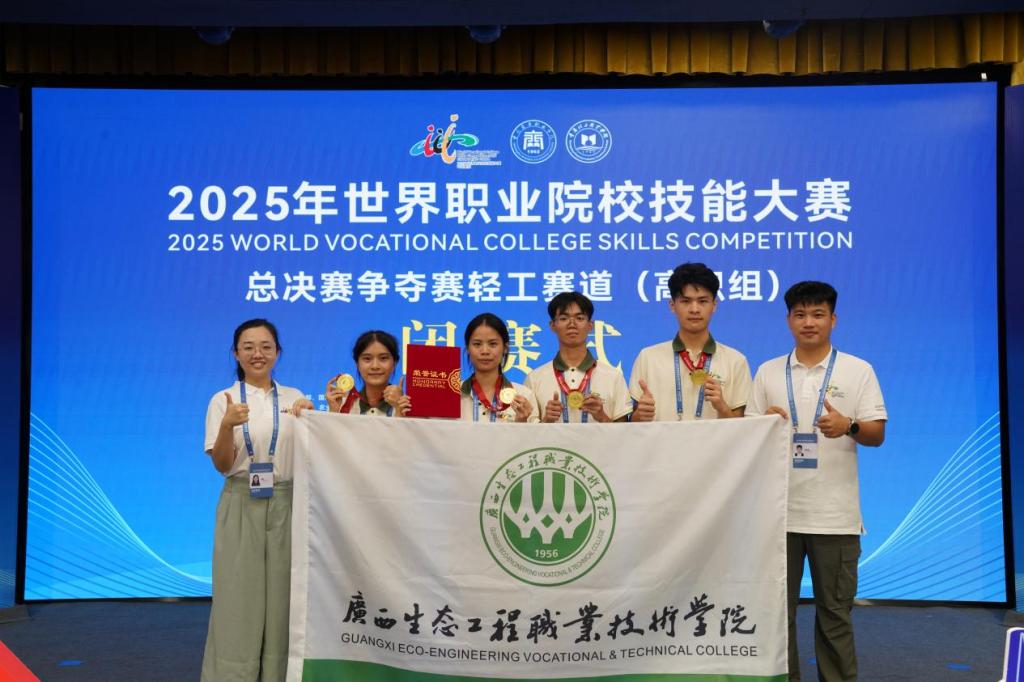 2025年8月26日至27日,2025年世界职业院校技能大赛总决赛轻工赛道(高职组)争夺赛在重庆成功举办。来自全国各省、自治区、直辖市的61支代表队、230余名选手齐聚一堂,同场竞技。由pg娱乐家具设计与制造专业学生党文慧(家具241)、羽敏翔、周衍江、张媛婷(家具242)为参赛选手,周振坤担任领队,彭洪君、梁明担任指导教师的“数智匠榫”团队,凭借出色表现,勇夺该赛项金奖,并成功晋级排位赛。