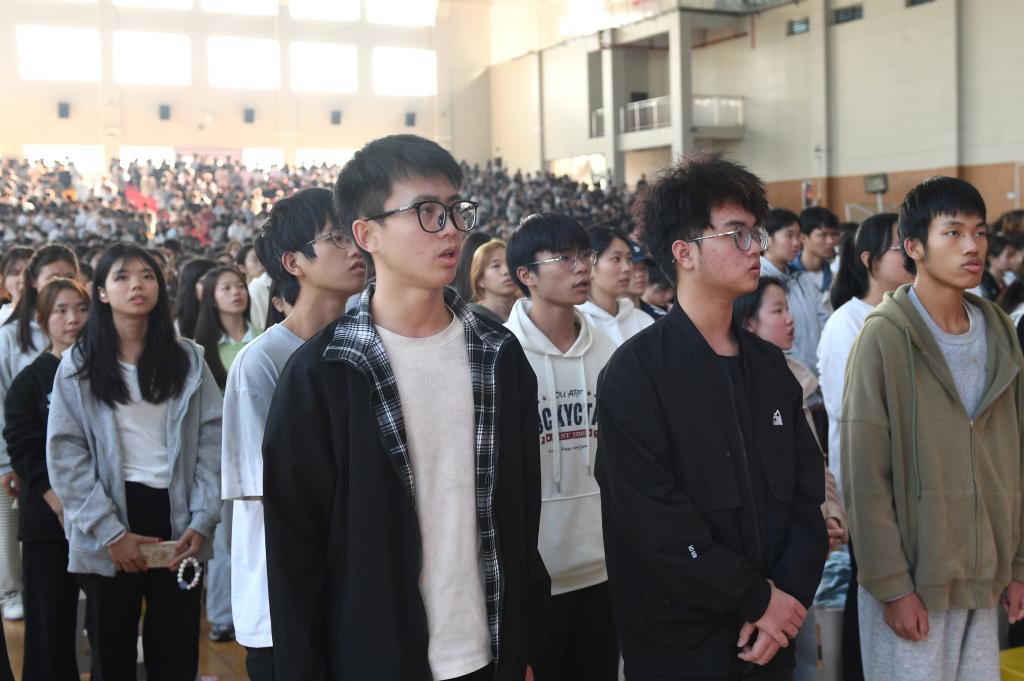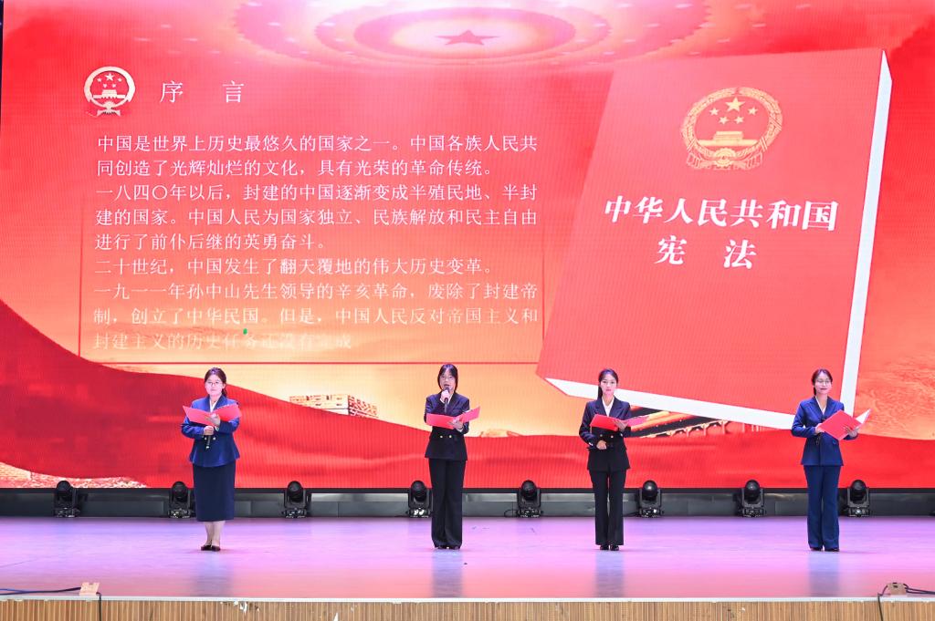 现场师生齐声诵读《中华人民共和国宪法》部分条款(节选)