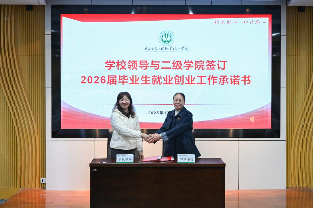 招生就业处系统总结了2025年工作,既总结了成效与亮点,也剖析了存在的问题,并提出了下一步的工作思路,并就2026年招生宣传工作进行了策略部署。生态环境保护学院、旅游与交通管理学院及数字媒体技术专业作为典型代表分享了经验与亮点。会议最后,生态环境保护学院作为二级学院代表,与学校现场签订了2026年毕业生就业创业工作承诺书。本次会议的召开,为系统推进2026届毕业生就业工作、进一步深化“招生—培养—就业”联动机制奠定了坚实基础。