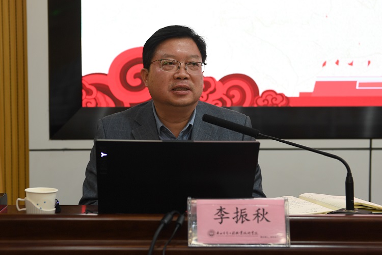 为了推动全校党员领导干部从党史中汲取强大精神力量,进一步增强“守初心、担使命”的思想和行动自觉,3月23日下午,学校在第二报告厅举行党史学习专题辅导报告会,党委书记李振秋教授作辅导报告,党委副书记王汉奇主持报告会。校领导,党政办、组织部、宣传部、纪委办、学生工作部、团委、马克思主义学院全体人员,各党总支委员、党支部委员参加报告会。