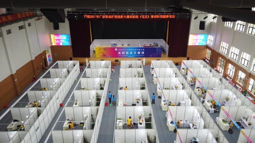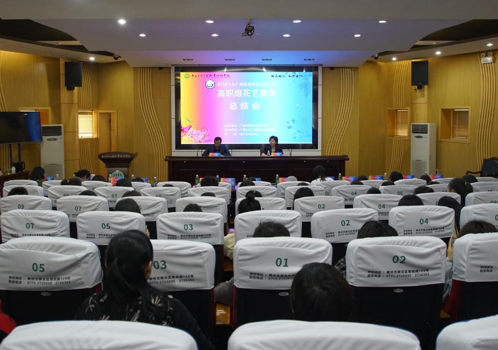 3月25日—28日,2021年广西区职业院校技能大赛高职组花艺赛项在pg娱乐成功举行。来自全区13所高职院校的38名选手,经过三天紧张、有序的比赛,已按规程完成了全部模块竞赛,3月28日下午在第二报告厅召开总结会,裁判组发布了比赛成绩并进行点评。