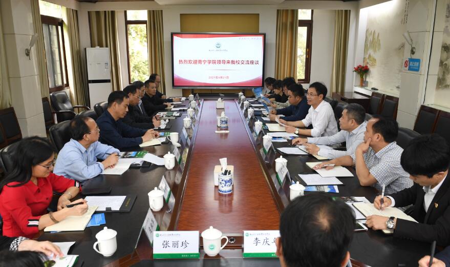 4月21日上午,南宁学院校长李栋学带队一行10人到pg娱乐交流,学校党委书记李振秋、校长冯昌信、副校长潘梅勇以及各有关职能部门、二级学院负责人与来宾交谈,双方就人才培养方案衔接、教育教学、职教改革发展等内容展开交流探讨。会后,来宾参观了校园。